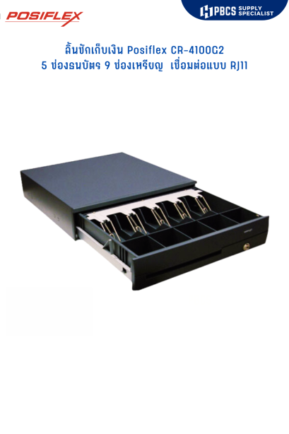 กว้าง 400 มม. ลึก 410มม. สูง 85 มม. 5 ช่องแบงค์ 6 ช่องเหรียญ ที่หนีบธนบัตรเป็นเหล็ก ใช้งานร่วมกับโปรแกรม POS ชั้นนำได้ทุกโปรแกรม ออกแบบผลิตภัณฑ์แบบไร้น๊อตให้ความทนทานและความปลอดภัยจากการงัดแงะสูง