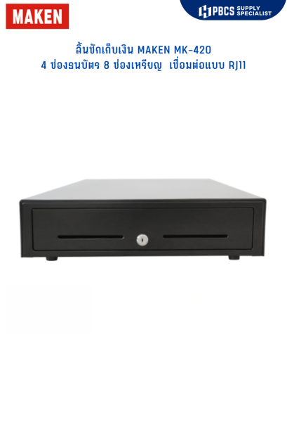 ลิ้นชักเก็บเงิน MAKEN MK-420 ช่องเก็บธนบัตร 4 ช่อง ช่องเก็บเหรียญ 8 ช่อง