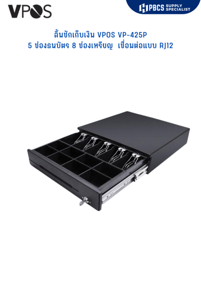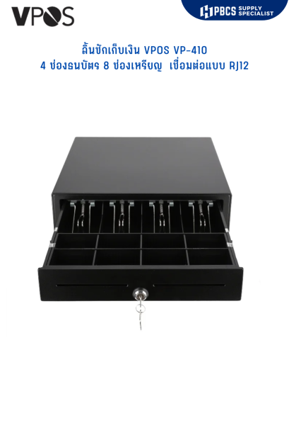 ลิ้นชักเก็บเงิน VPOS VP-350 ช่องเก็บธนบัตร 4 ช่อง ช่องเก็บเหรียญ 8 ช่อง