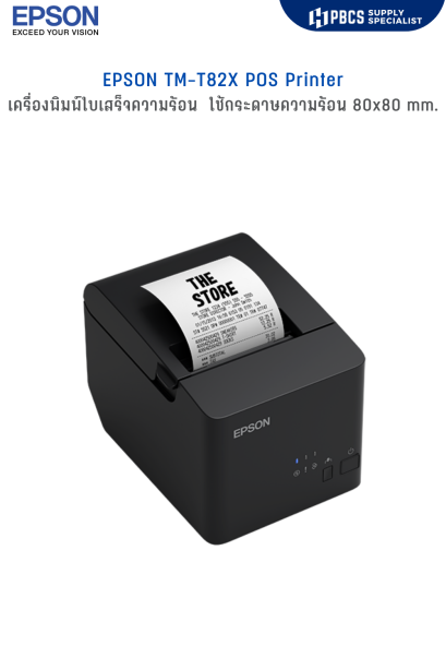epson TM-T82x เครื่องพิมพ์ใบเสร็จระบบ Direct Thermal ใช้งานร่วมกับกระดาษใบเสร็จความร้อนขนาด 80x80 mm. ขนาดกระทัดรัด แข็งแรง ใช้งานต่อเนื่อง ทนทาน ไม่เสียจุกจิก พิมพ์ภาษาไทยได้สวยงาม สละและวรรณยุกต์ไม่ลอย รุ่นยอดนิยมสำหรับร้านค้าทั่วประเทศ