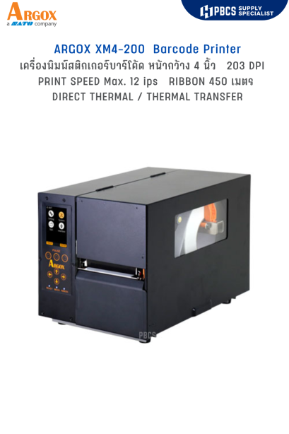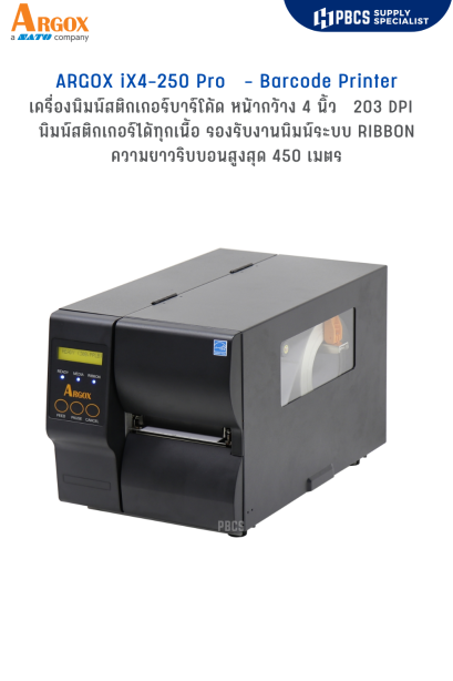 สำหรับงานพิมพ์ที่มีการพิมพ์ต่อเนื่องตลอดทั้งวัน อำนวยความสะดวก USER โดยมีหน้าจอ LCD แสดงผลการทำงาน iX4 รองรับงานพิมพ์ทั้ง 2 ระบบ ทั้ง Direct Thermal และThermal Transfer ความละเอียดมาตฐาน 203 dpi ความเร็วสูงสุด 8 ips รองรับริบบอนยาว 450 เมตร ไม่ต้องเปลี่ยนม้วนบ่อย และเริ่มต้นการใช้งาน และออกแบบงานพิมพ์ได้ง่ายๆ ด้วยโปรแกรมออกแบบบาร์โค้ด Bartender ซึ่งมี Free Version สำหรับเครื่องพิมพ์ Argox โดยเฉพาะ รองรับเมนูภาษาไทย