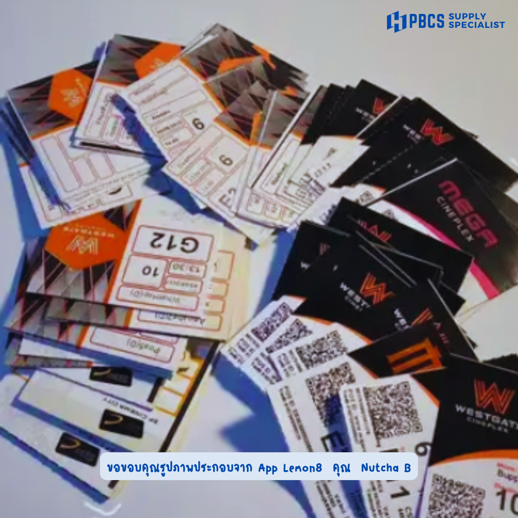 ตัวอย่างงานที่ใช้กระดาษกับเครื่องพิมพ์บาร์โค้ด เช่น ตัวหนัง หรือตั๋วสำหรับเข้าชมสถานที่ต่างๆ เป็นต้น